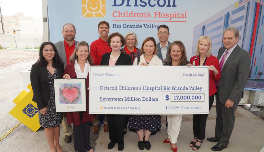 The gift announcement was made at a press conference and check presentation Wednesday, March 29, at the construction site of Driscoll Children’s Hospital Rio Grande Valley in Edinburg, which is set to open soon.