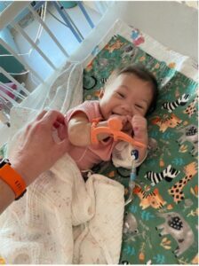 “We played a lot of music for her and made sure she had toys she could interact with. Her favorite was a jungle gym; it laid over her, so she could hit these dangling balls and make them spin,” he said. “That time was really important; I think because Brittany and I became more consistent with visiting her, she grew so much more attached to us.”