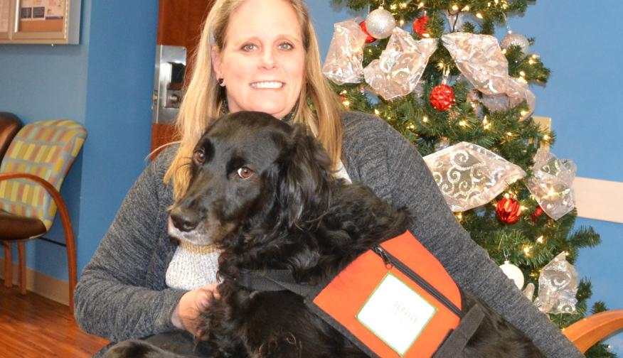 Because of a traffic accident in 1999, Monica Johnson has been in a wheelchair ever since. Avalon, her service dog from Service Dogs Inc. in Dripping Springs, has been with her since 2016. Together, they have worked in the Social Work Department at Driscoll Children’s Hospital since 2019.