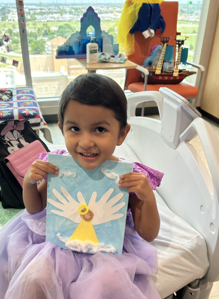 Six-year-old Rolando presses colorful cotton pom-poms onto his Christmas tree and pushes blue paint across the background. He loves volleyball and Minecraft, but on this day at Driscoll Children’s Hospital Rio Grande Valley, he is an artist, lost in brushstrokes and bright color.
